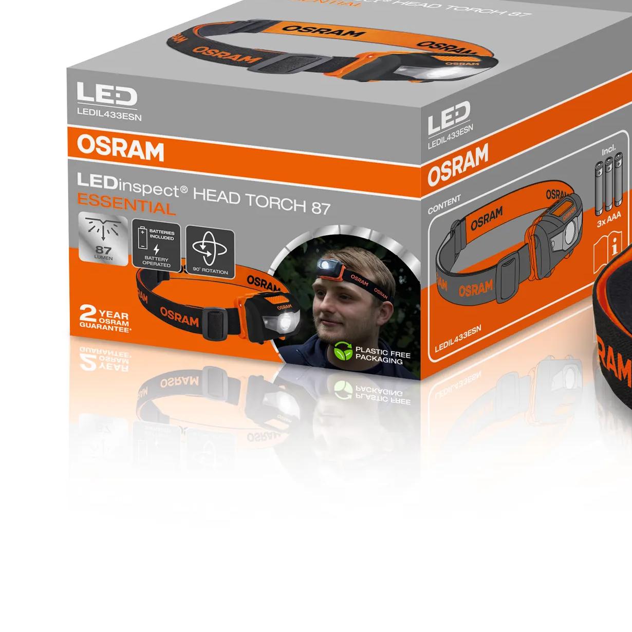 The OSRAM LEDinspect HEAD TORCH 87 ESSENTIAL High Performance Headlamp provides reliable illumination for both work and leisure in dark environments. A bright white LED delivers up to 87 lumens of light output, while the integrated red flashing LED offers added safety in emergency situations.