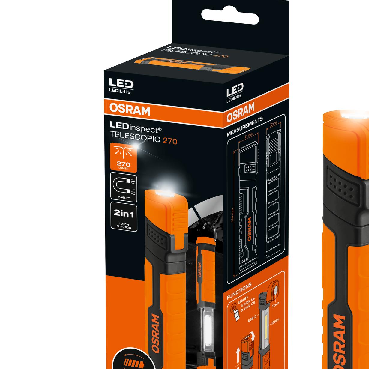 Whether you're working under the bonnet, camping outdoors, or tackling a DIY task, the OSRAM LEDIL419 is built to perform. The telescopic body allows you to quickly adjust the length and focus light exactly where it's needed, while the strong magnetic base keeps both hands free for the job at hand.
